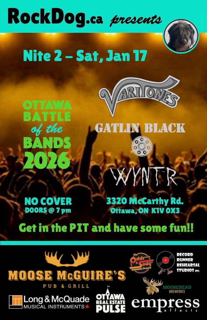 The battle goes down on Saturday, January 17, 2026, at Moose McGuire’s Pub & Grill (3320 McCarthy Road, Ottawa), and we’ll be sharing the stage with two killer bands: Varitones and Gatlin Black. It’s an honour to be included in a lineup stacked with so much local talent.